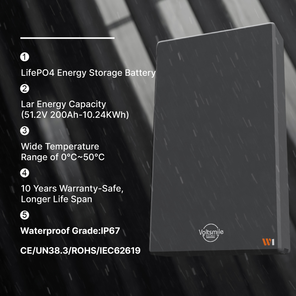 1. Robust and Reliable Energy Storage: The Voltsmile W1 Wall-Mounting Lithium Iron Battery Pack is the ultimate solution for robust and reliable energy storage needs.